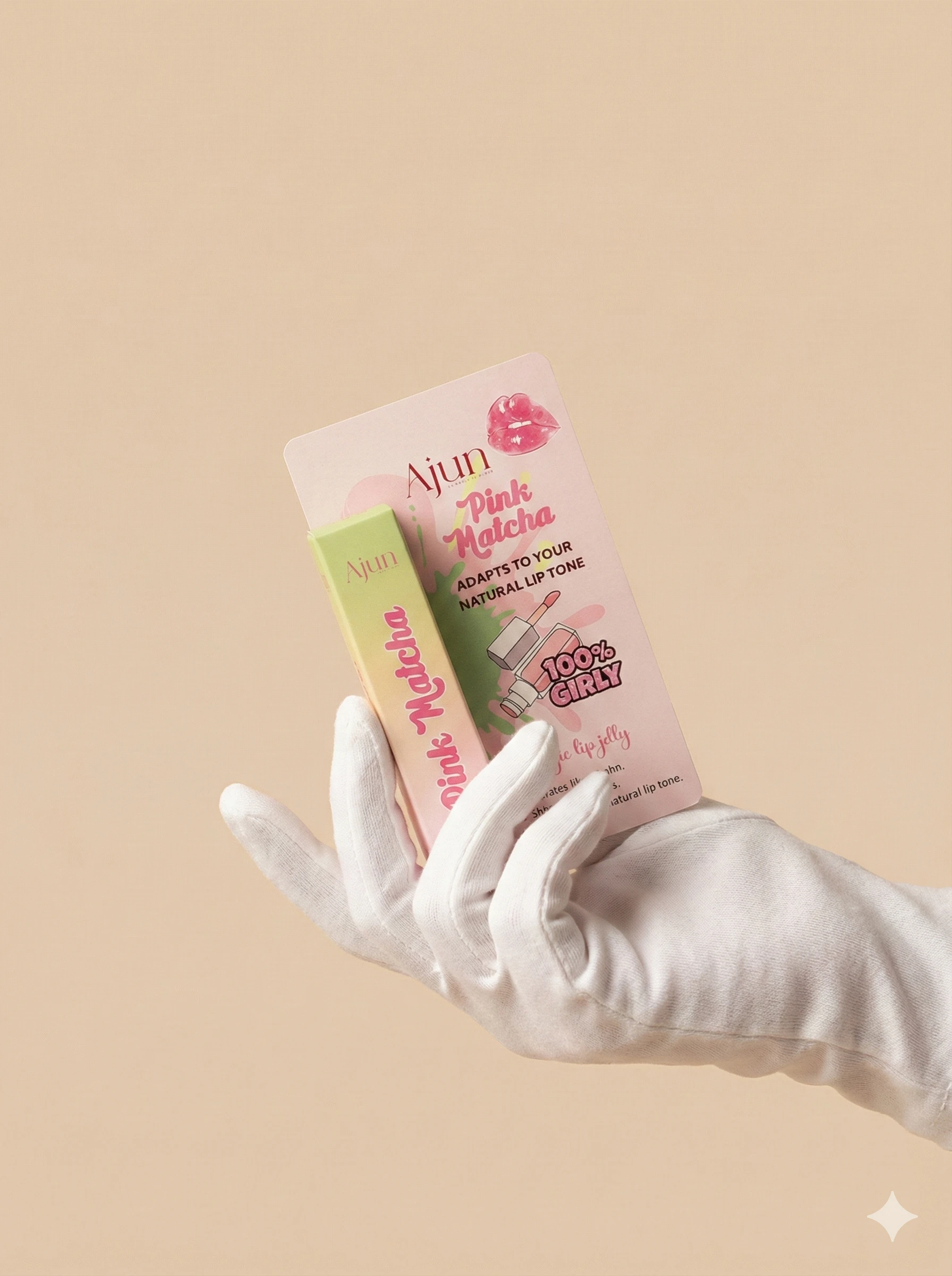 A pink matcha lip jelly with matcha and hyaluronic acid for long-lasting moisture and a plump, glossy finish.